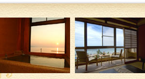 展望石風呂付客室、桧風呂付客室など個性豊かな癒し空間をご用意しております。夕日ヶ浦の夕日を眺めながらごゆうるりと。※窓から海が見えない部屋もございます。 | ![]() |